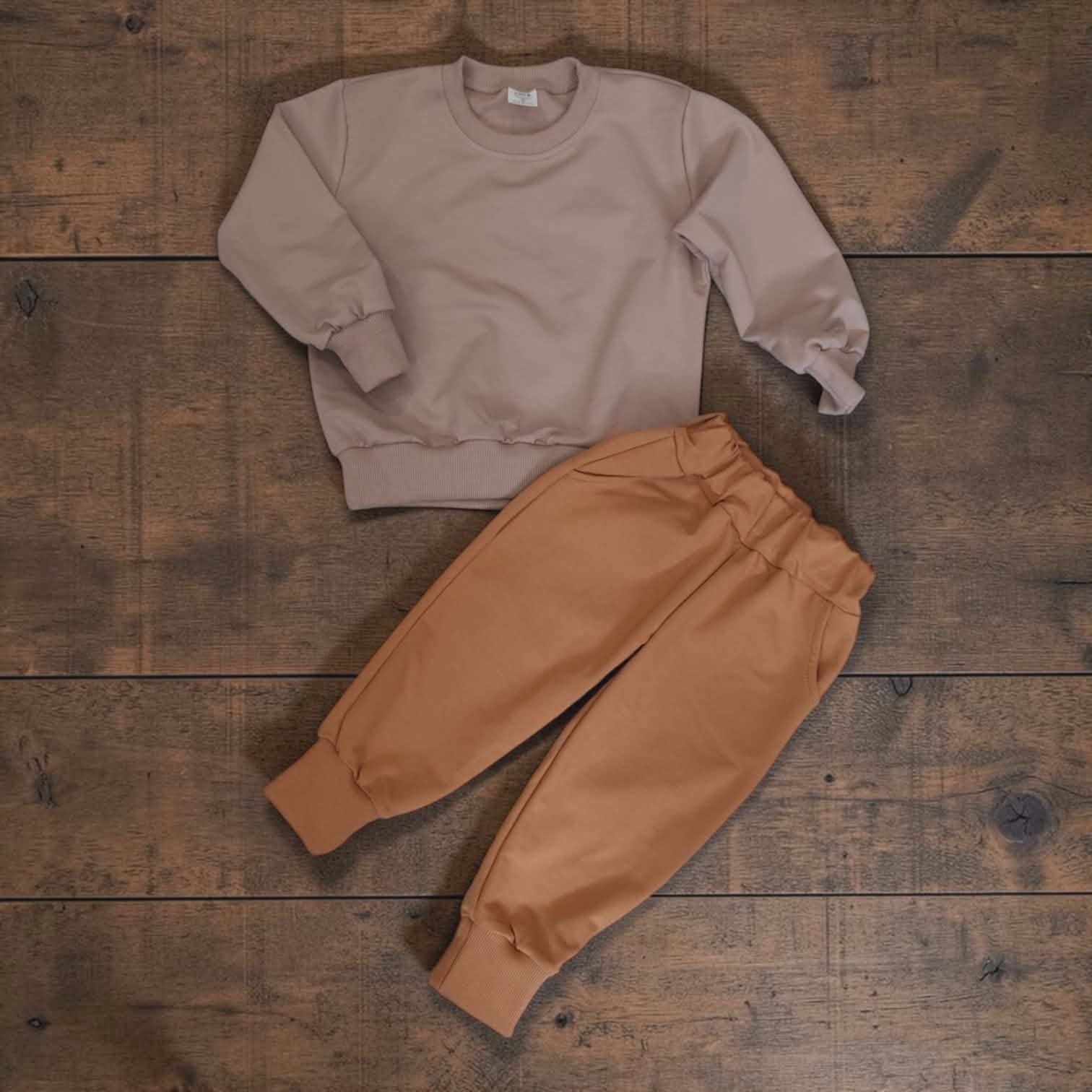 Idealny komplet dresowy dla chłopca w kolorach ziemi .